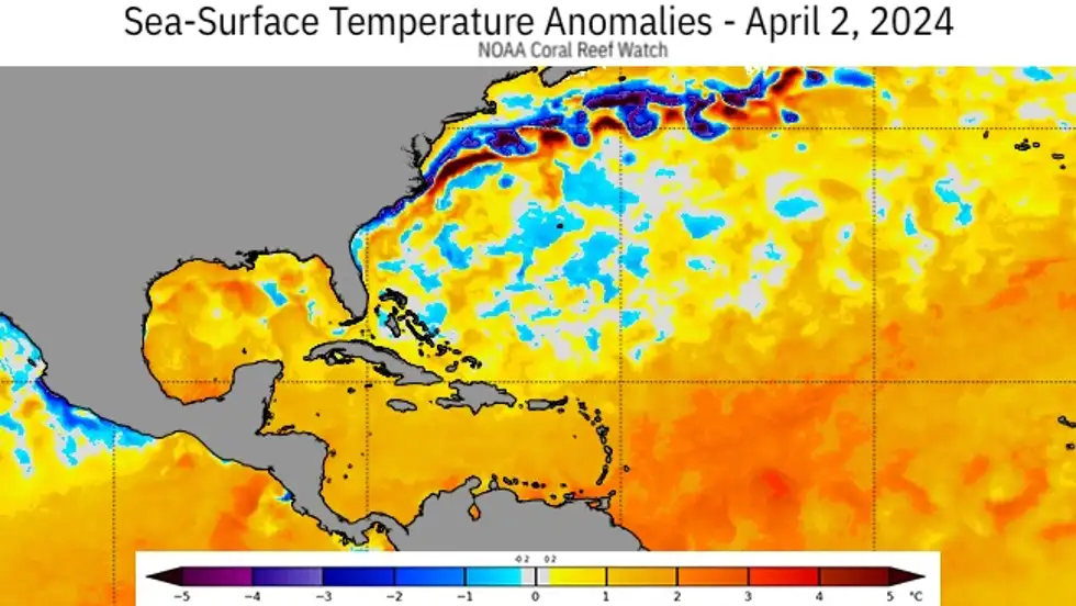 Dado que las temperaturas del agua de la cuenca del Atlántico a principios de la primavera se correlacionan con la actividad de la temporada de huracanes, esta es una señal preocupante.