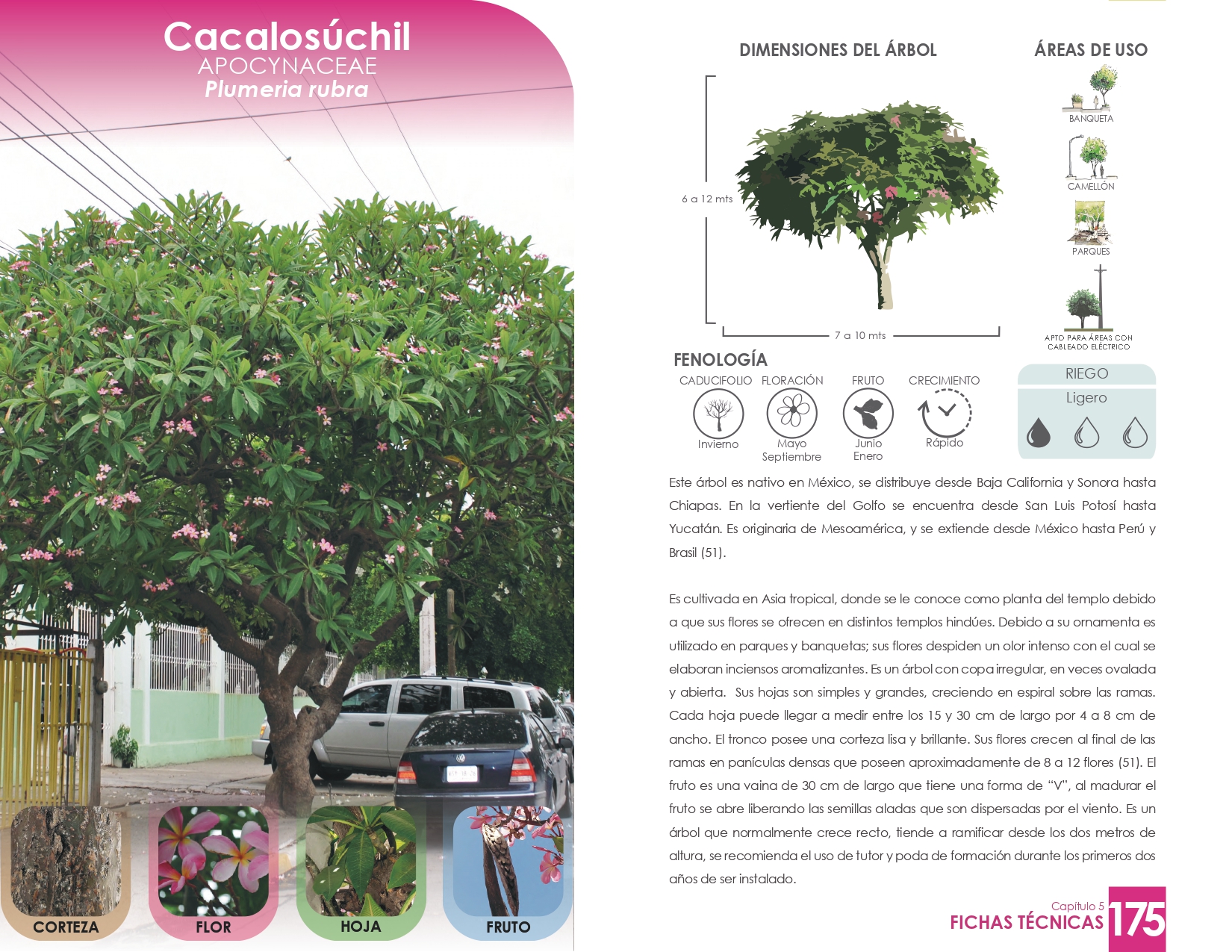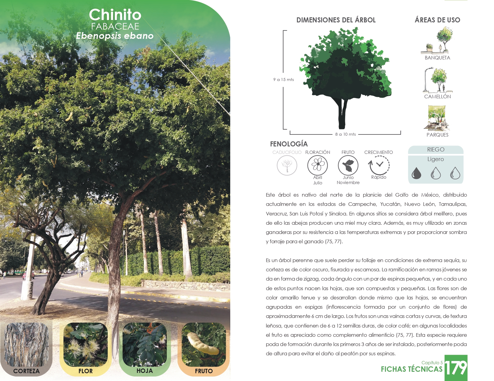 Los árboles más adecuados para Culiacán, por su bajo uso de agua, resistencia al calor y amplia sombra, son el chinito o ébano negro, venadillo, cacalosúchil, el ebano blanco, la gloria, el guayacan, las amapas regionales y el periquillo, entre otros.