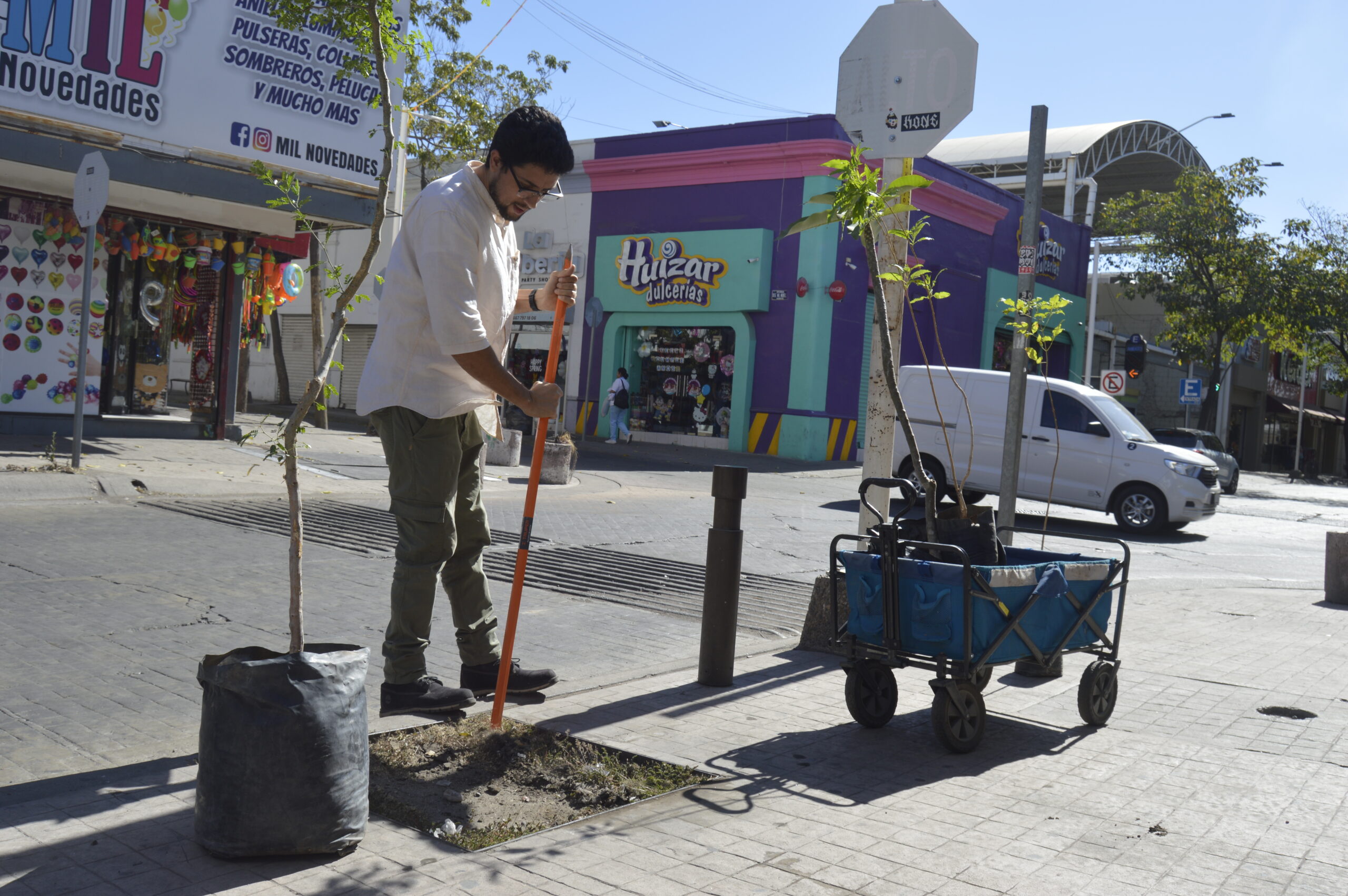 El biólogo añadió que este trabajo se realiza con el apoyo de la ciudadanía, sobre todo los mismos locatarios del centro de Culiacán; así, además de sembrar estos árboles donados por el Ayuntamiento, se habla y concientiza con los dueños de los negocios del centro para que apoyen en su cuidado.