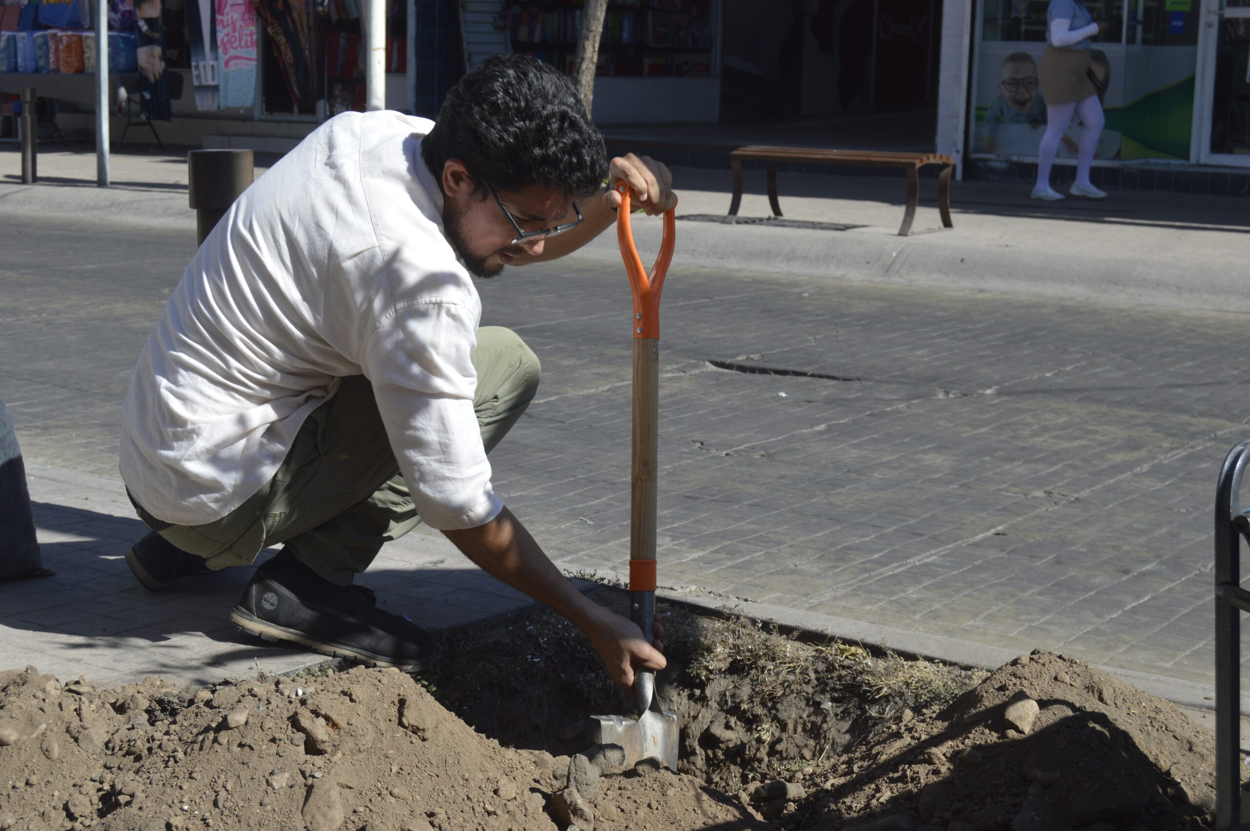 Culiacán, Sinaloa.- El fuerte calor de la tarde no fue obstáculo para que este lunes miembros de Guaiacum sembraran un par de árboles que, de ser cuidados y arropados por la comunidad, en algunos años darán sombra a los transeúntes que circulen por el primer cuadro de la ciudad. Se trata de asolearse hoy para brindar una sombra a los culichis del mañana.