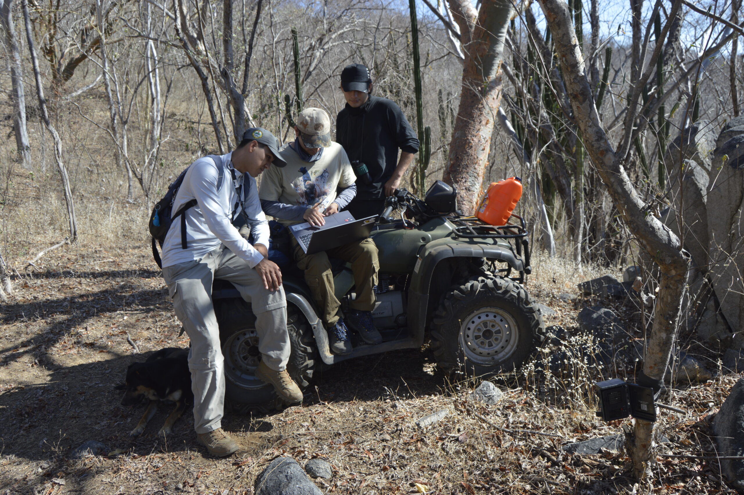 Al día siguiente, viernes 3 de mayo, vigilantes, estudiantes y científicos recibieron el alba realizando un recorrido de observación de aves y revisando algunas de las cámaras trampa que están colocadas en la zona como parte del censo del Jaguar. Antes de media mañana ya habían observado a un CaraCara Plancus a lo lejos sobre un cardón, a una pareja de Colorín Morado y un solitario Colorín Azul, a un grupo de 11 codornices e innumerables Urracas Caranegra.