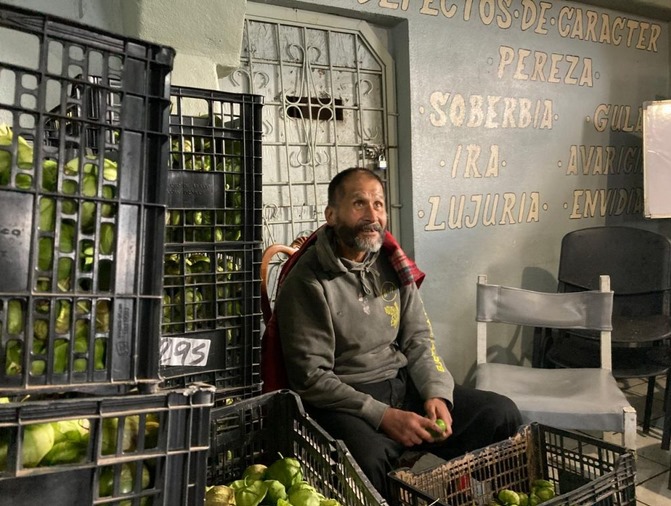 Cuando lo encontramos, cumplía con una jornada de trabajo de 12 horas continúas pelando tomatillo, le quitaba la cáscara uno a uno, esperando a que las autoridades del Castillo consideren que ha mejorado su estado y le bajen el tiempo. A pesar del trabajo extenuante, está tranquilo.