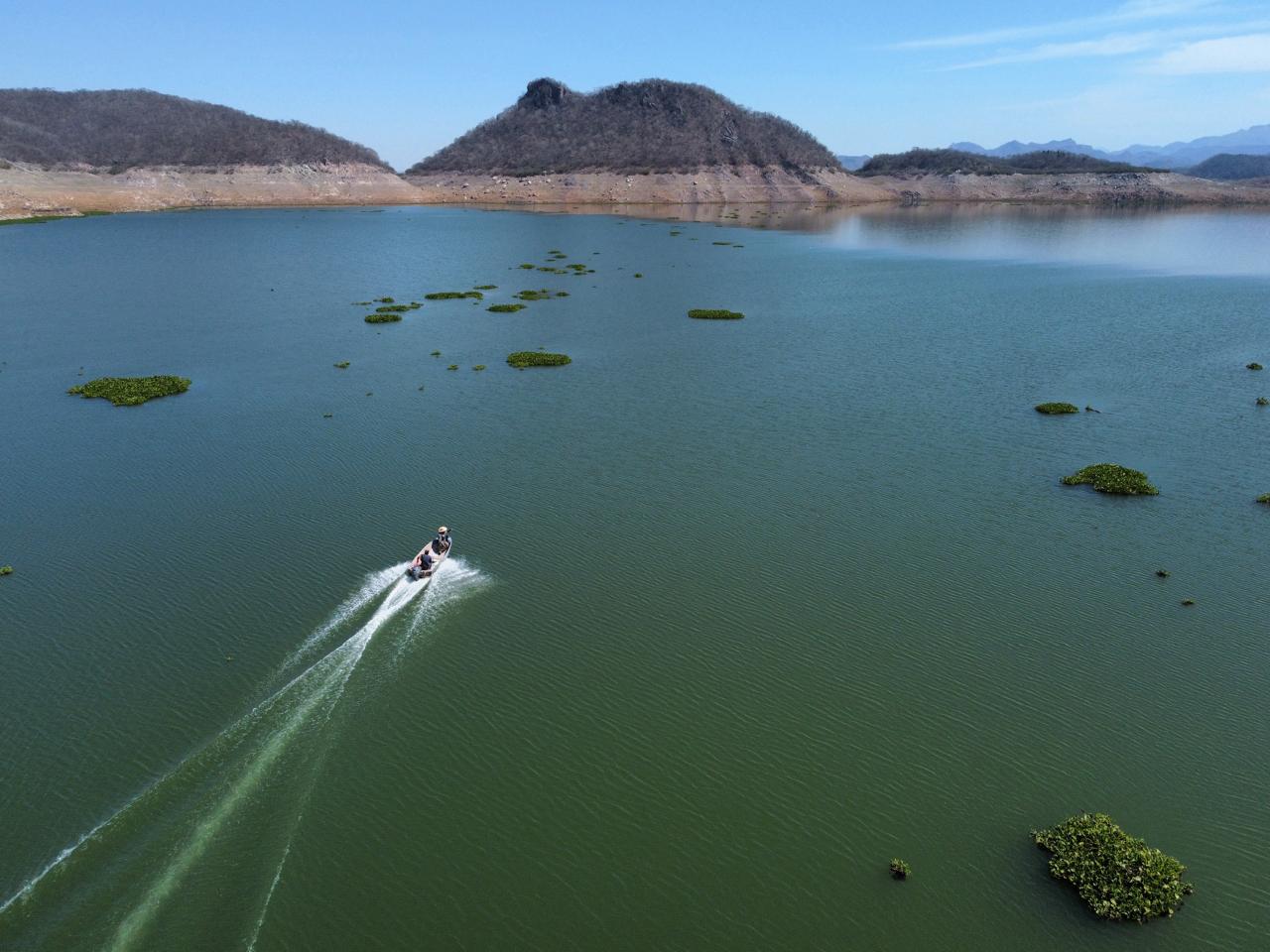Culiacán, Sinaloa.- La presa Adolfo López Mateos -llamada también Varejonal– en Badiraguato, Sinaloa, sufre los efectos de la sequía y el estrés hídrico de la tierra: la pesca ha disminuido considerablemente.