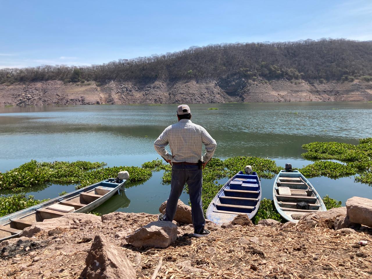 Para los pescadores de la presa Varejonal, la sequía es visible y les preocupa que en los próximos días se alcance a ver un templo que fue inundado cuando se construyó el embalse. En los últimos 30 años solamente la han visto una vez.