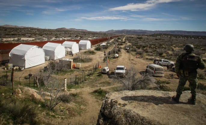 La presencia del Ejército, la GN y el INM se percibe desde la zona de Playas de Tijuana, donde el muro fronterizo desemboca en el océano Pacífico, pasando por el área conocida como “El bordo”, la garita de San Ysidro y hasta el Ejido Jacumé, en el municipio de Tecate, donde desde principios del año montaron un campamento para la detención de personas que intentan cruzar el muro.