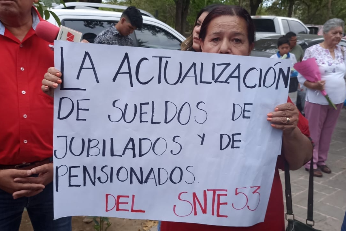 Culiacán, Sinaloa.- Hoy 15 de mayo, Día del Maestro, el colectivo “Somos más que 53”, movimiento disidente del Sindicato Nacional de Trabajadores al Servicio de la Educación (SNTE), sección 53, se manifestó para exigir la devolución del fondo de vivienda a las viudas y viudos de los trabajadores de la sección 53.