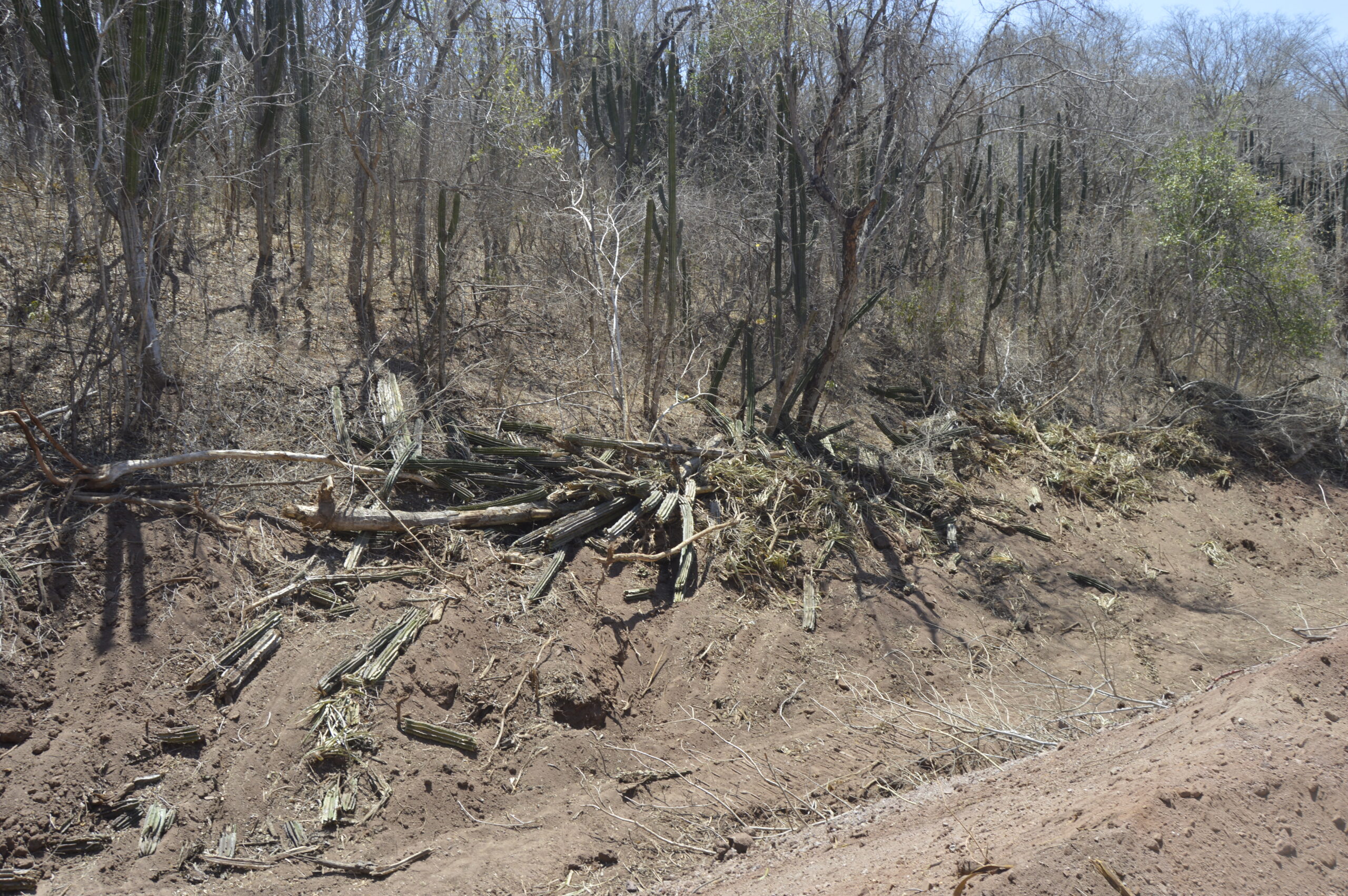 Un venado ofuscado entre las calles de la comunidad sorprendió y alertó a los vecinos de que algo fuera de lo ordinario pasaba en los alrededores. Se acercaron a los arroyos contiguos a la zona habitacional y desde antes de llegar pudieron escuchar el ruido de máquinas. Al acercarse más, vieron que la apertura del camino ya había destruido grandes árboles y cactus para la construcción de una criba de materiales pétreos, los que se usan para la construcción.