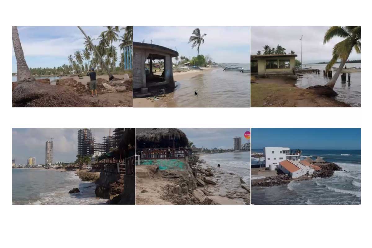 Además, la científica mencionó que, según un estudio del 2011, entre 1953 y 1992 el nivel del mar en el puerto se elevó entre 1.9 y 3.3 milimetros por año. Más recientemente, en el 2019, el entonces secretario de turismo, Miguel Torruco, alertó que, según datos de la Sociedad Alemana de Cooperación de Trabajo Internacional, (GIZ) la erosión costera se comía 1.08 metros de playa al año en el destino sinaloense.