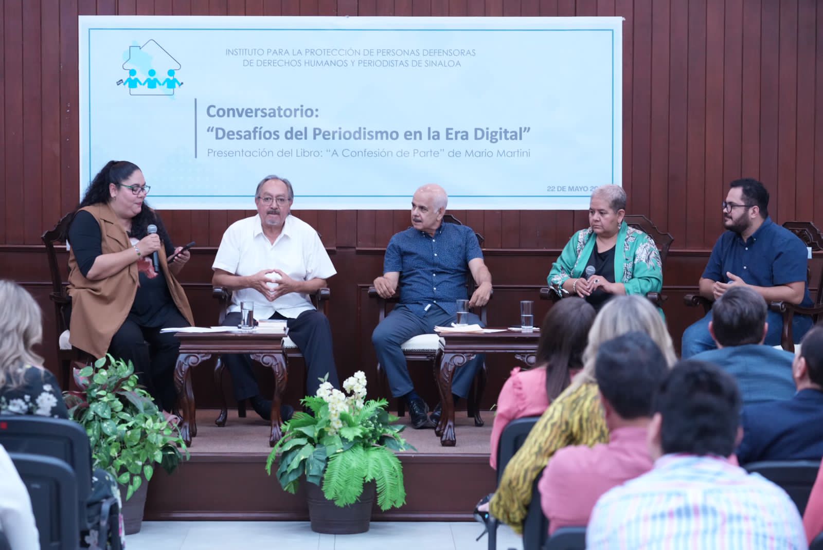 Durante el conversatorio, la diputada Celia Jáuregui recordó que dicho evento se realizó en el marco del segundo aniversario de la aprobación de la Ley de Protección a Periodistas y Personas Defensoras de Derechos Humanos de Sinaloa, misma que dio origen al el Instituto para la Protección de Personas Defensoras de Derechos Humanos y Periodistas del Estado.