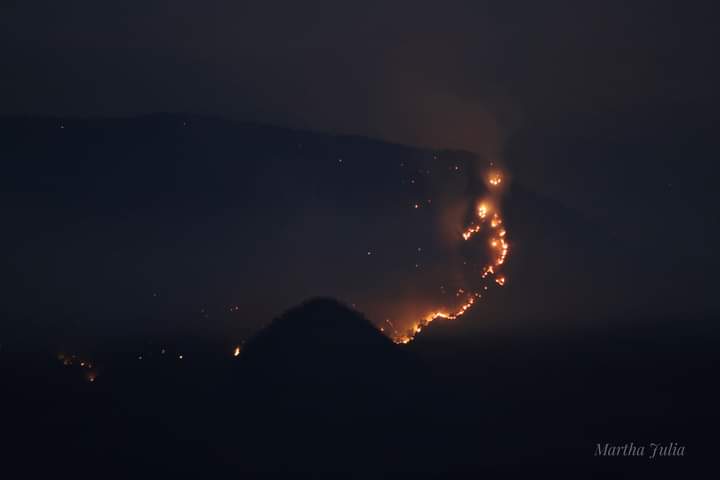 “Debo decir que (el incendio) está en una zona muy complicada, de mucho risco y lo que buscamos, primero, es proteger la vida de nuestros brigadistas, entonces, se abre una brecha cortafuego y se hace un contrafuego para que el fuego que viene de arriba se encuentre con una línea abajo”, explicó la titular de la SEBIDES, María Inés Pérez Corral.