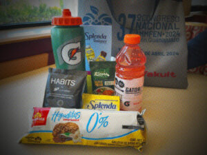Productos entregados a los asistentes al 37 Congreso AMMFEN y stands de empresas promocionando productos
