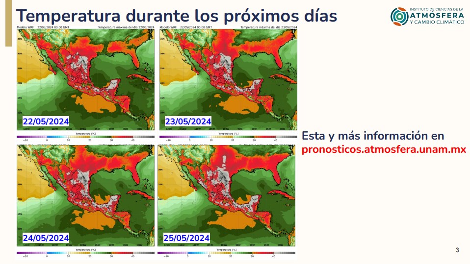 Durante una conferencia de prensa virtual, investigadores del Instituto de Ciencias de la Atmósfera y Cambio Climático de la UNAM advirtieron que prácticamente todo México vivirá temperaturas extremas y sin precedentes durante el resto del mes de mayo.