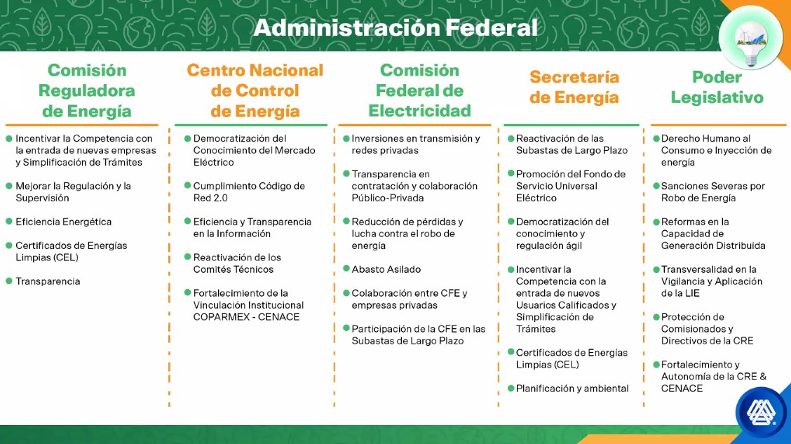 En este sentido, la Coparmex ya se ha acercado a las mesas de energía de los distintos equipos de los candidatos a la presidencia; pero una vez pasada la elección buscarán un nuevo acercamiento con la ganadora para presentarles este plan de trabajo.