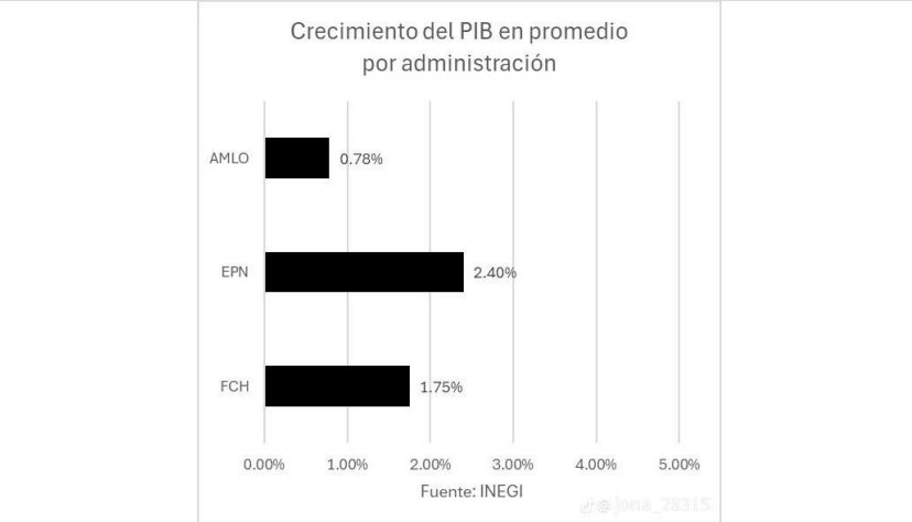 Para sostener su hipótesis, César Valenzuela no solo analiza las propuestas de ambas candidatas, también el comportamiento sexenal de la economía, y sobre eso hace un comparativo del actual gobierno con sus dos antecesores, Enrique Peña Nieto y Felipe Calderón. Aquí algunos indicadores: