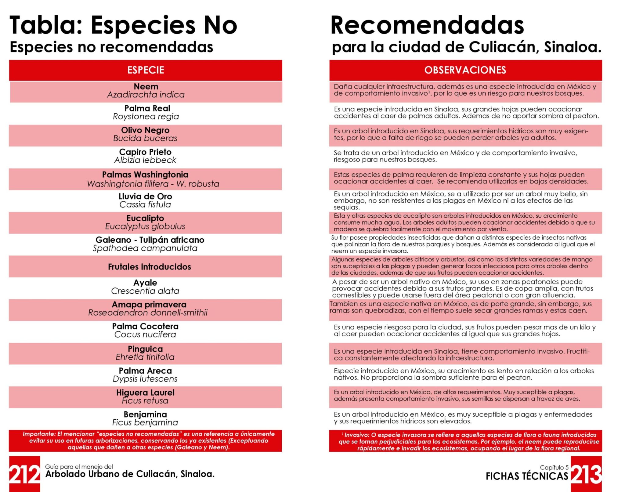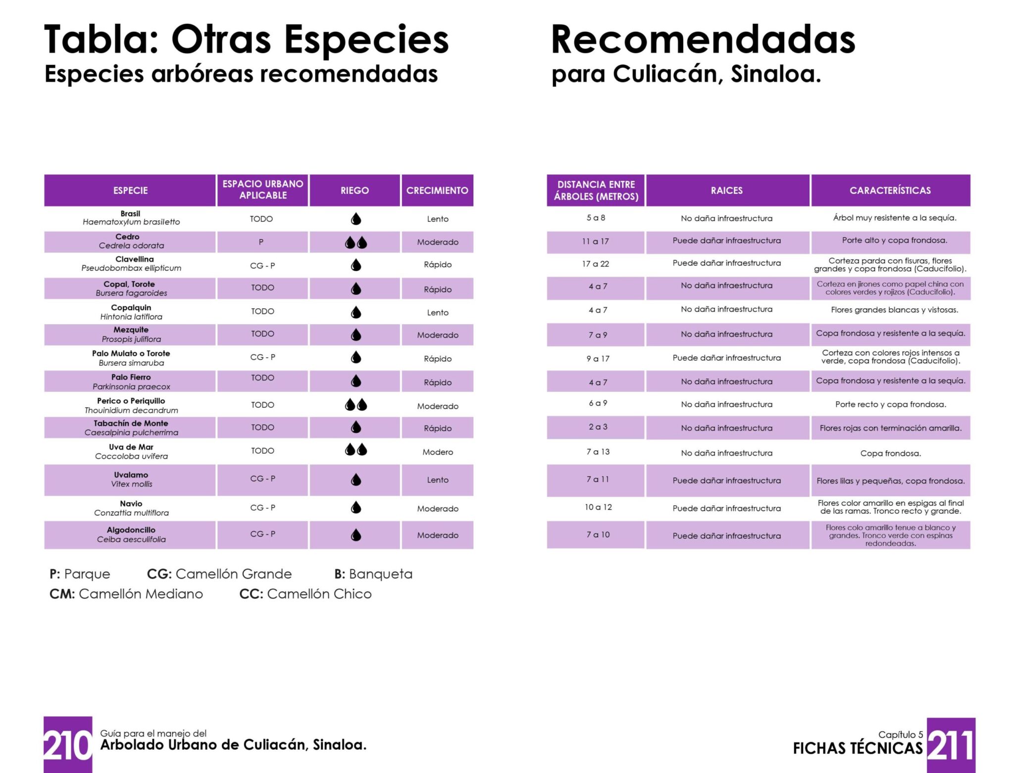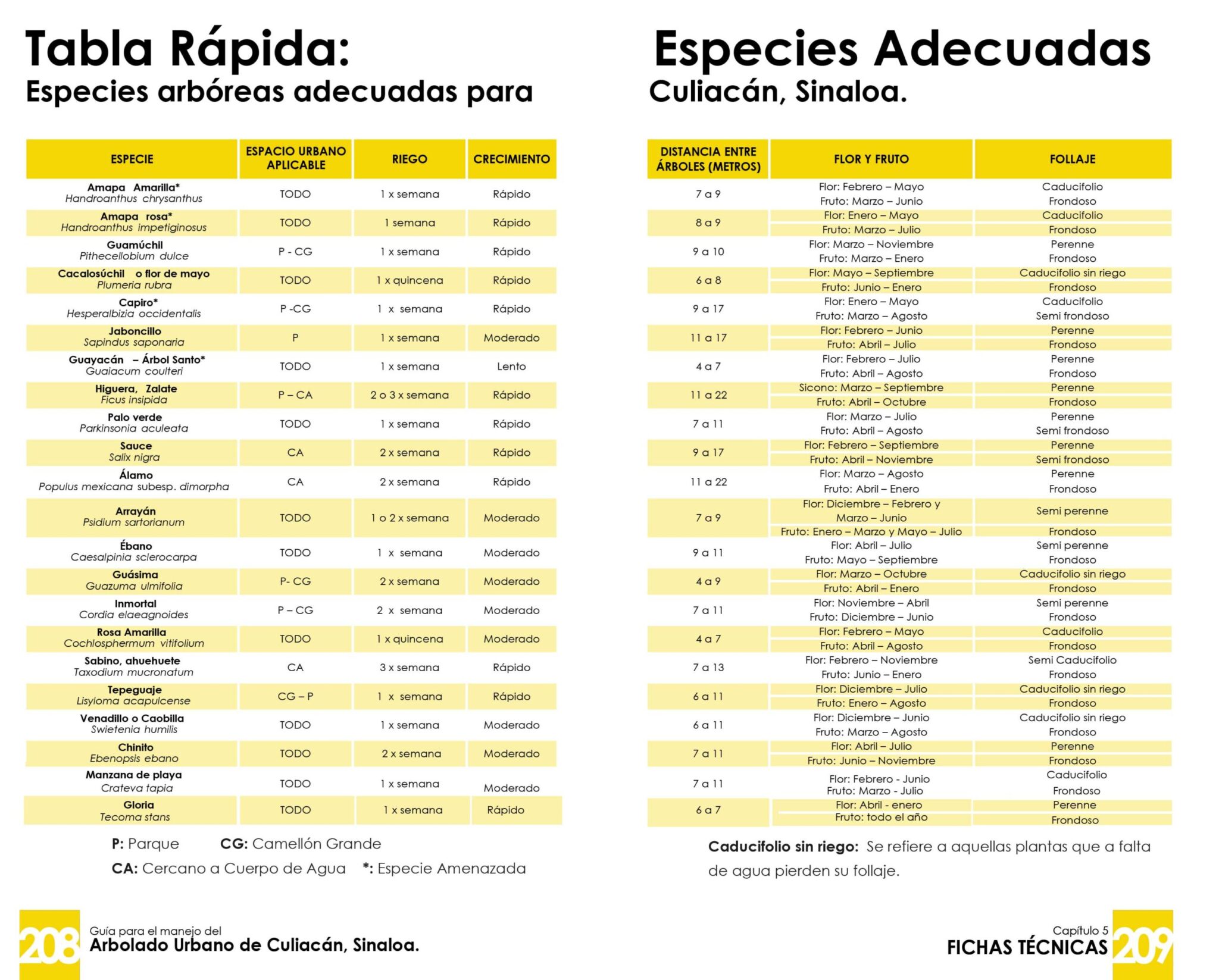 La Guía de Arbolado Urbano para Culiacán, publicada en el 2022 por la Guaiacum A.C. y Mapasin, es un instrumento que busca preservar y ampliar las áreas verdes y el arbolado urbano de Culiacán. Para esto propone hasta 36 especies de árboles recomendadas para la ciudad, así como 15 especies no recomendadas; lista encabezada por el Neem, pero que también advierte sobre otros árboles dañinos como la Palma Real, el Olivo Negro o el Capiro Prieto; las muy usadas Palmas Washingtonia, Lluvia de Oro y Eucalipto también se encuentran en está lista.