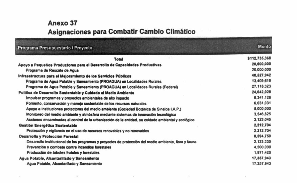 Durante este 2024, señala la Ley de Ingresos y Presupuesto de Egresos del Estado de Sinaloa para el Ejercicio Fiscal del año 2024 y Anexos publicada en la edición 156 del Periódico Oficial del Estado de Sinaloa, el presupuesto estatal para el desarrollo y protección forestal fue de 8 millones 594 mil 750 pesos, de los cuales 4 millones y medio están etiquetados para la prevención y combate contra incendios forestales.