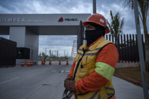 Una invasión naranja es la constante en “Paraiso”. Miles de trabajadores vestidos con overoles anaranjados circulan por calles, mercados, transporte en la ciudad que espera un gran desarrollo por la llegada de la refinería. Foto: Duilio Rodríguez