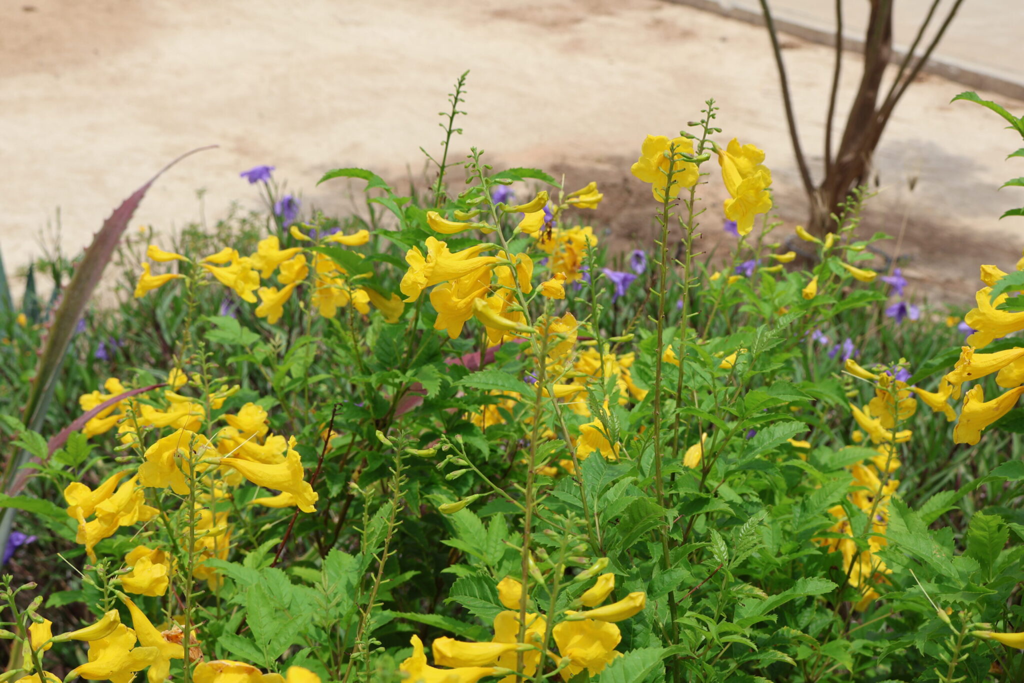 “En lo particular este jardín es una combinación de plantas áridas con plantas salvajes”, explica. “Me gusta mucho porque esa combinación no se ve precisamente desértica, sino que tiene color, flores amarillas, moradas, rojas, naranjas; que también lo hace un jardín tipo polinizador”.