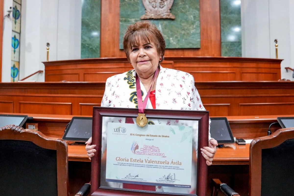 Culiacán, Sin.- En un ambiente de alegría y entusiamo, donde prevaleció el mensaje de que es tiempo de mujeres, el Congreso del Estado de Sinaloa entregó este miércoles el Premio a la Mujer Rural Sinaloense 2024 a Gloria Estela Valenzuela Ávila, habitante del ejido El Gallo de Limones, del municipio de Guasave.