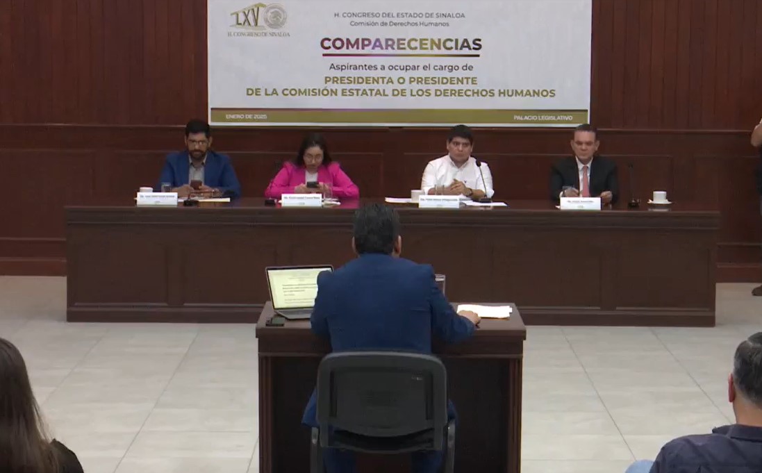Culiacán, Sinaloa.- En el primer día de comparecencias públicas para la selección del nuevo titular de la Comisión Estatal de Derechos Humanos de Sinaloa (CEDH), cuatro aspirantes presentaron sus propuestas y visiones ante el Congreso del Estado, presentando cada uno un enfoque particular de la labor que buscan realizar de ser elegidos para ocupar este cargo.
