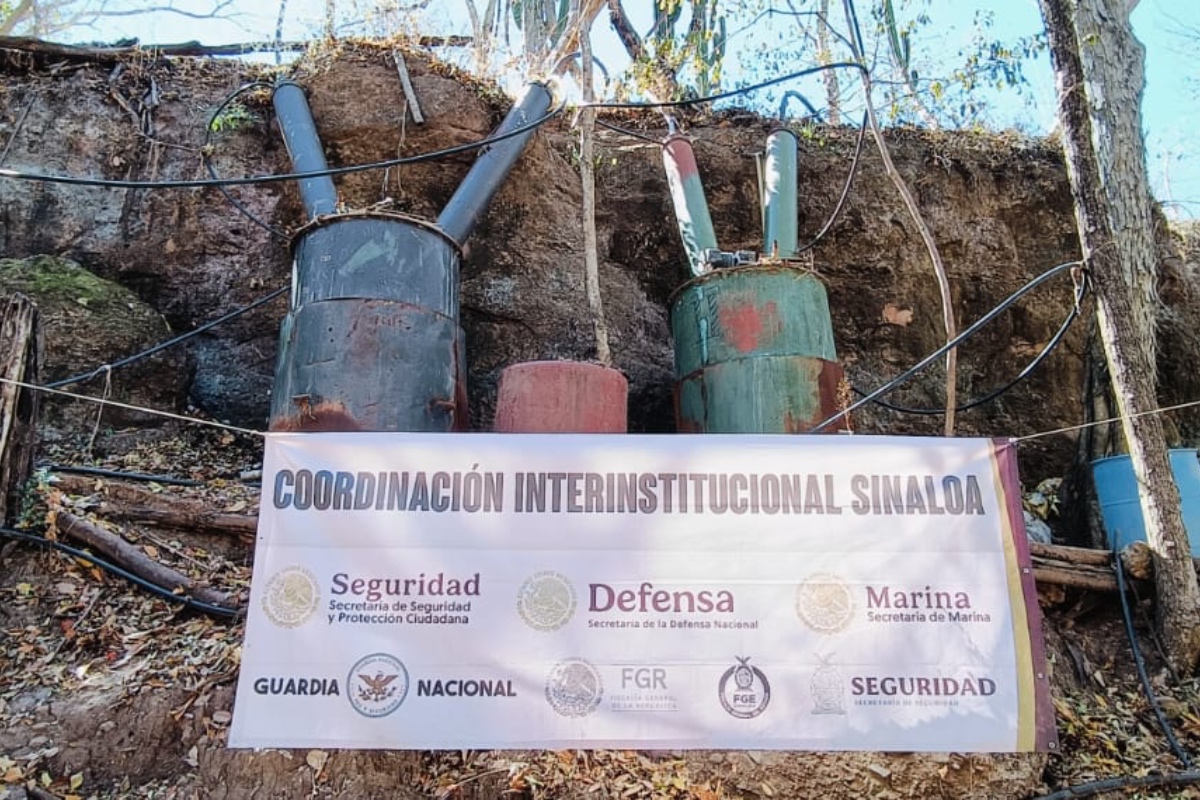 Así mismo, el tercer laboratorio localizado en inmediaciones del poblado San Miguel de las Mesas, se aseguraron mil litros de material en proceso mezclado en crudo, 3 mil 750 litros de precursores líquidos, un reactor, dos condensadores, una mezcladora, cuatro tinas de plástico, cuatro tanques de gas LP y diversas herramientas de trabajo.