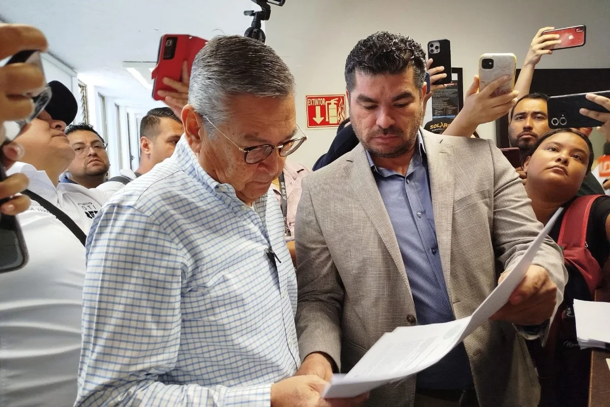 “Le hago saber que tenemos este documento para entregar para él, ya que el día de ayer se le hizo saber que hoy a las 08:00 de la mañana se le iba a entregar”, expresó el legislador ante una trabajadora del Ayuntamiento, identificada como Diana Lizeth Zamora Díaz, quien recibió el oficio en representación del alcalde, quien no se presentó a la hora acordada.