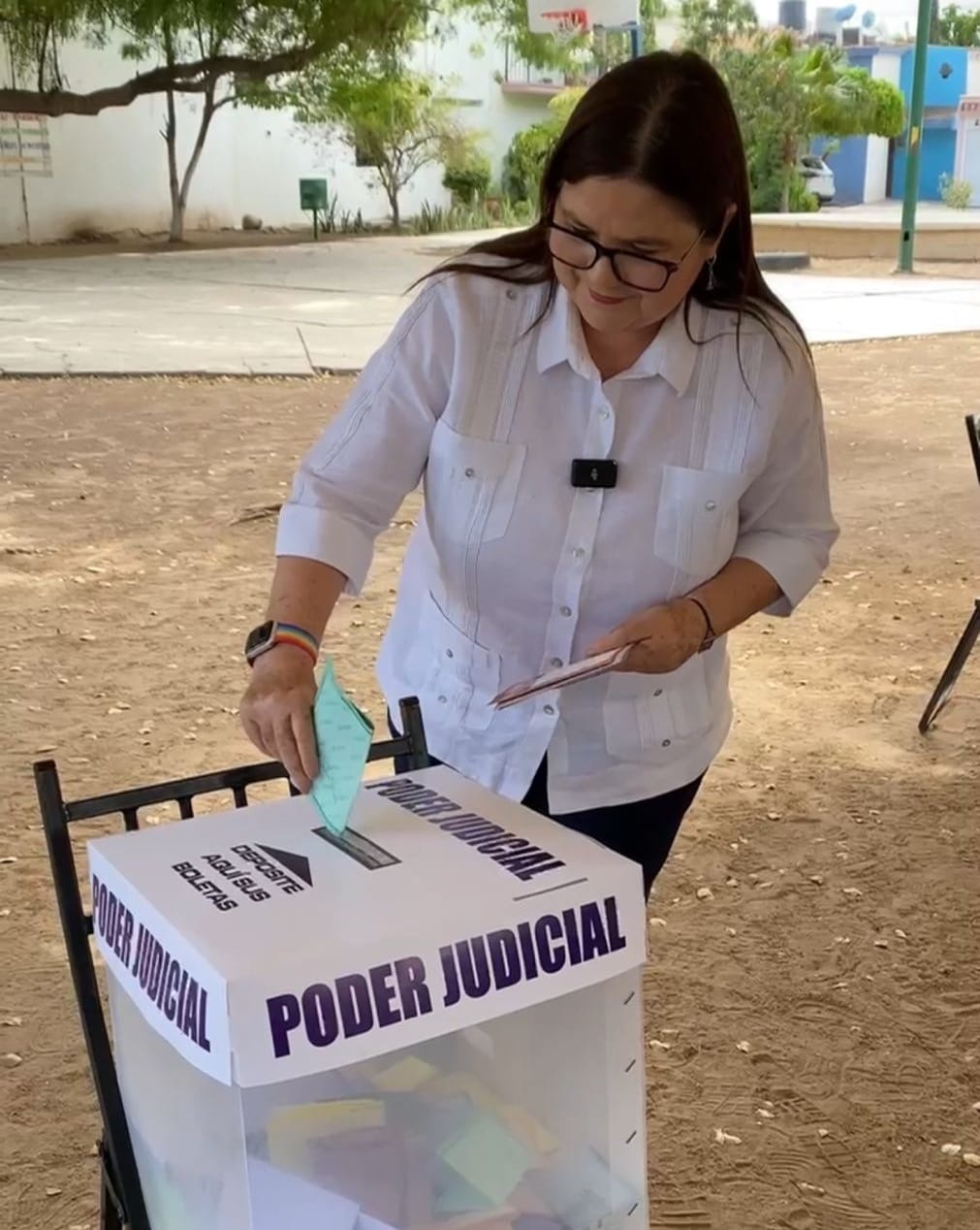 Desde una casilla en Culiacán, la legisladora subrayó la importancia de este ejercicio inédito, en el que por primera vez las y los ciudadanos eligen directamente a juezas, jueces, magistradas, magistrados, ministras y ministros de la Suprema Corte de Justicia de la Nación (SCJN).