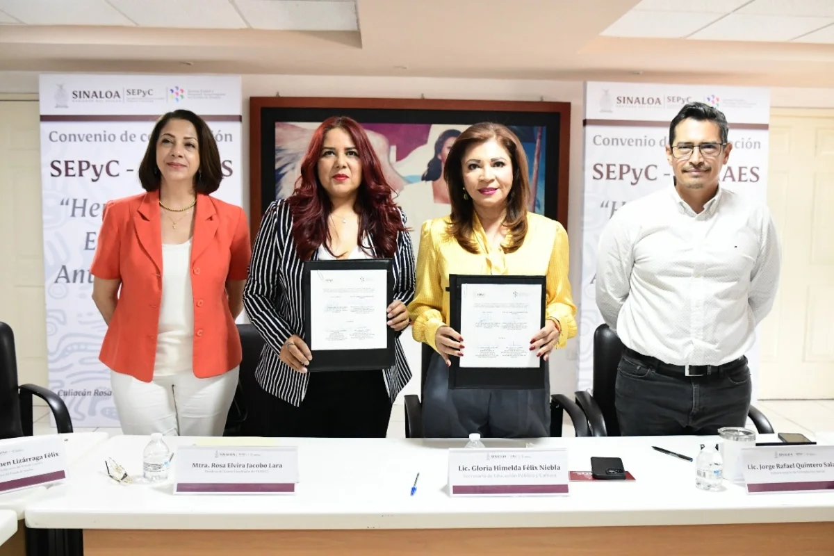 Este lunes, la titular de la SEPyC, Gloria Himelda Félix Niebla, firmó un convenio de colaboración con el Sistema Estatal y Municipal Anticorrupción de Sinaloa (SEMAES), representado por Rosa Elvira Jacobo Lara, presidenta del Comité Coordinador, con el objetivo de capacitar al personal educativo en “Herramientas Educativas Anticorrupción”, que luego serán replicadas en las aulas de educación básica, media superior y superior.
