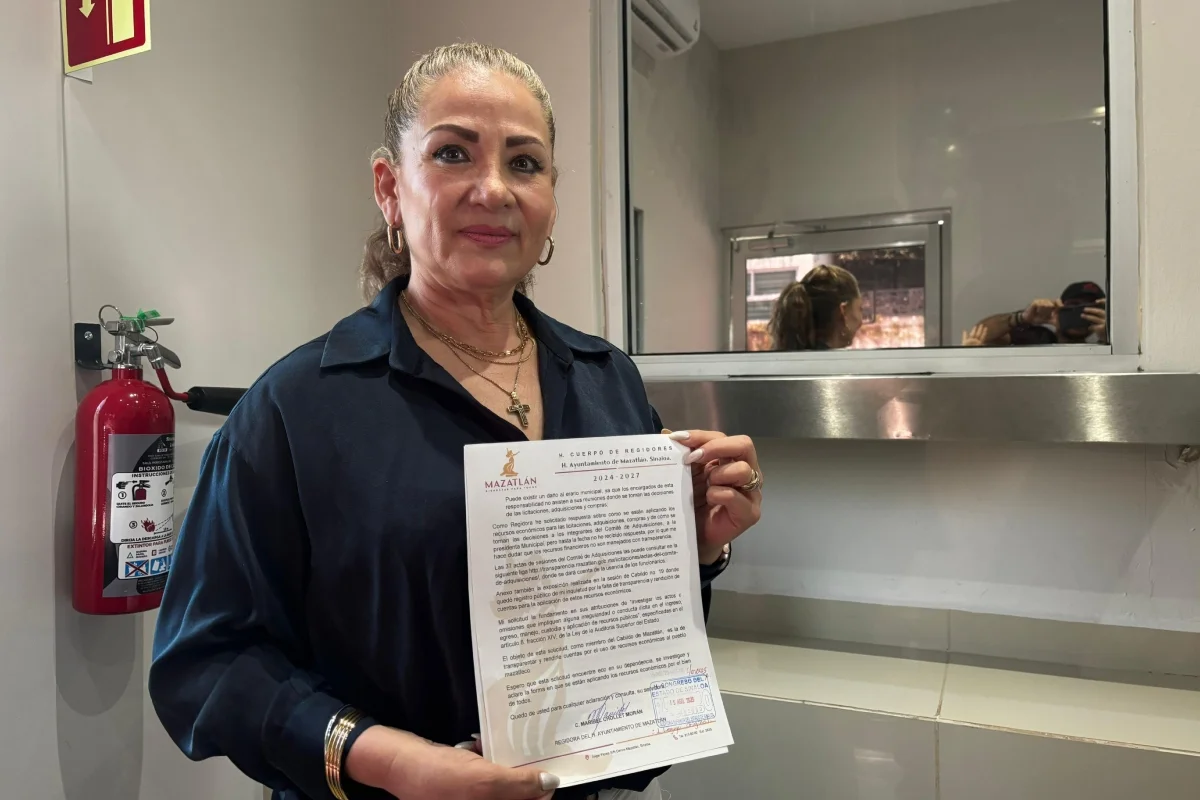 Culiacán, Sin.- La regidora mazatleca priista Maribel Chollet Morán presentó este viernes 15 de agosto, en la ventanilla de Oficialía de Partes de la Auditoría Superior del Estado de Sinaloa (ASE), una denuncia formal contra el Comité de Adquisiciones del Gobierno Municipal, al que acusa de operar con opacidad, ausentismo sistemático y uso discrecional de los recursos públicos.