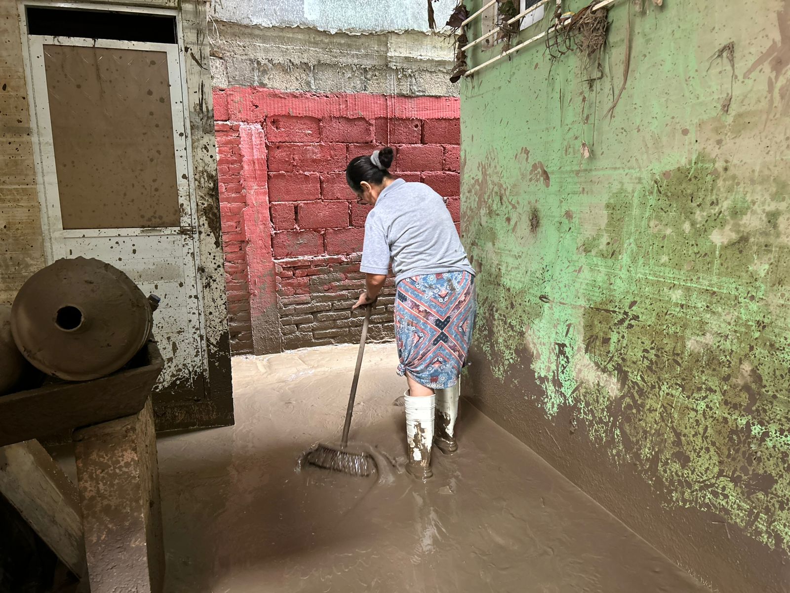 “Estamos lavando las paredes antes de que el lodo se haga costra. Con rastrillos sacamos el lodo. Tuvimos que arrastrar los muebles para la calle porque se le puede hacer polilla con la humedad, como el refrigerador, que ya se está mosqueando. Cualquier ayuda que pudieran dar o mandar es buena, todo aceptamos con el corazón porque no hay nada”, platica.