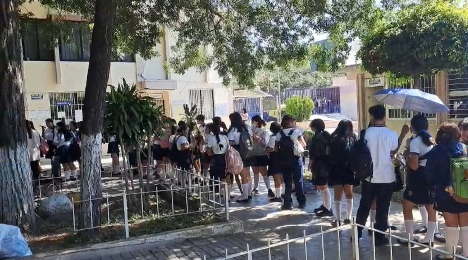 Como evidencia, explicó, se grabó un video donde el alumnado se encuentra realizando una larga fila para poder emitir su voto en la urna fija, tras haber sido dejado fuera de la votación en la urna móvil.