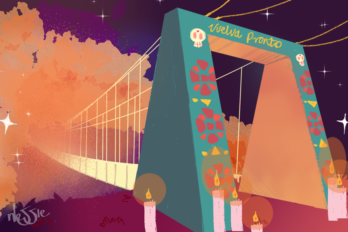 El puente no es largo, pero el paso es lento. Las almas tropiezan con el olvido, se cubren con la bruma del tiempo. Algunas se detienen ante los altares de los vivos, atraídas por el aroma del pan, por la risa que suena parecida a la que dejaron atrás. Otras, más tímidas, se quedan al borde, mirando desde lejos, temerosas de no ser reconocidas.