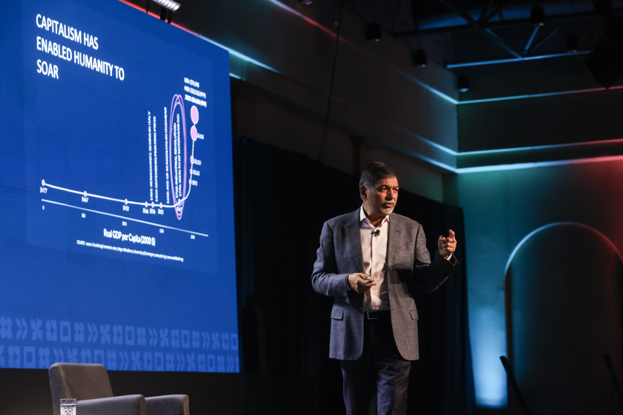 Sisodia recordó que su trayectoria académica lo llevó a estudiar empresas admiradas por sus empleados, clientes y comunidades. De ahí surgió la idea del capitalismo consciente, un enfoque que no rechaza al capitalismo, sino que busca elevarlo y humanizarlo.