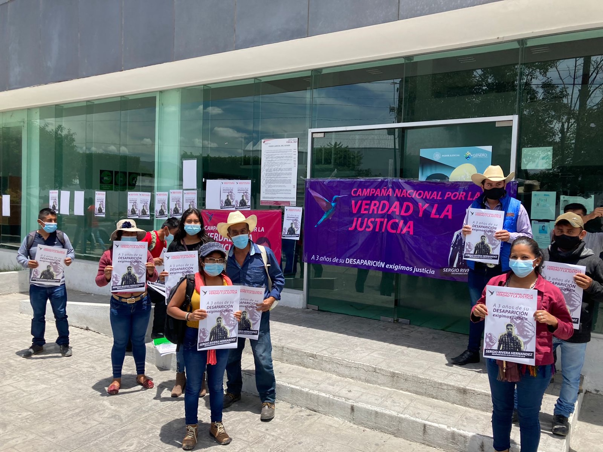 En agosto de 2021, integrantes del MAIZ se manifestaron en la Casa de Justicia de Tehuacán para exigir la aparición de Sergio Rivera Hernández. (MAIZ)