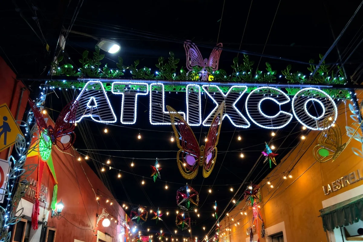 Atlixco se convierte en la Villa Iluminada, con millones de luces, figuras enormes y música en las calles. Recorrerlo es como entrar en un cuento navideño, ideal para familias y visitantes.