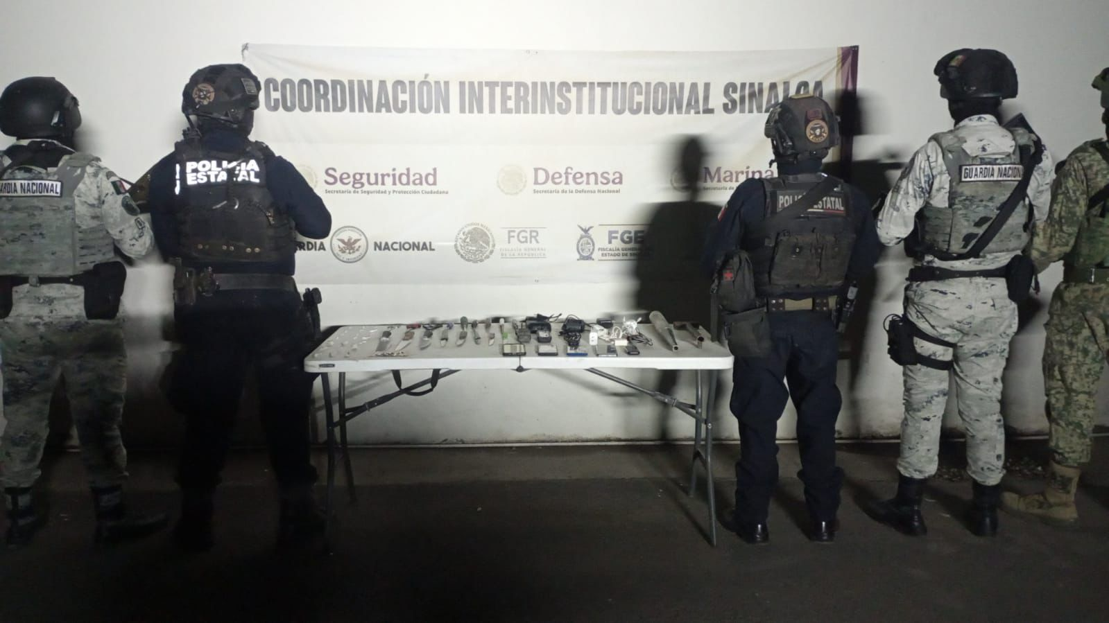 Además, en la zona de Agua Blanca, municipio de Culiacán, fueron localizados y destruidos artefactos explosivos de fabricación casera y durante el cateo de dos inmuebles en la privada Gran Cantabria de la capital del estado hubo el hallazgo de vehículos blindados y arsenal integrado por municiones, fusiles, lanzagranadas, artefactos explosivos y miles de cartuchos.