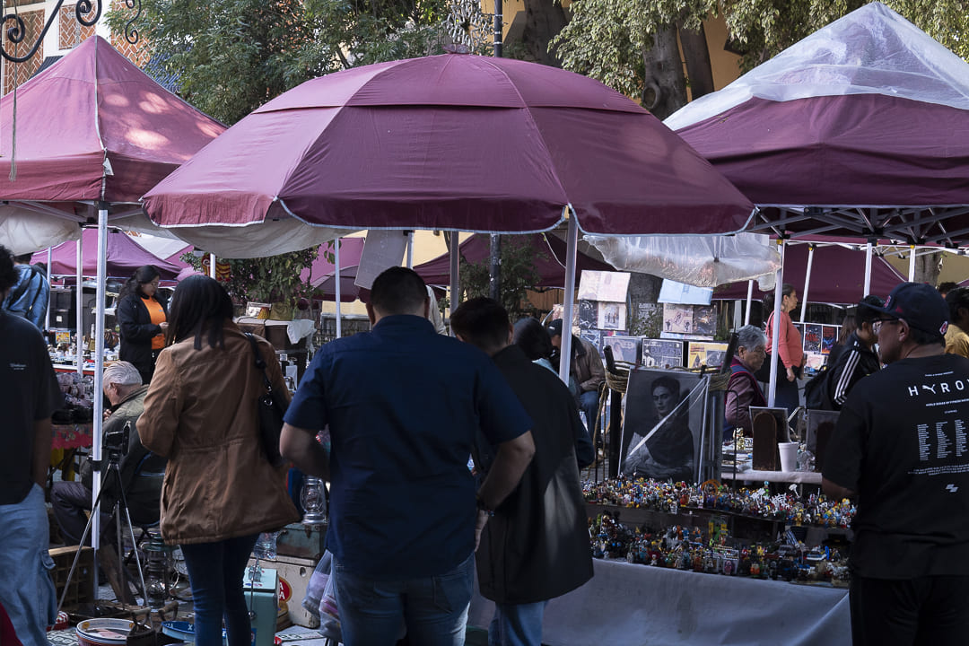 Un sábado a las ocho de la mañana ya estaba yo en la plaza. Había por lo menos otros diez vendedores buscando un espacio. Porfirio fue asignando lugares según el grado de familiaridad que tenía con cada uno. A mí me tocó el último. Nos presentaron, le regalé un libro y le expliqué que tenía una pequeña colección de antigüedades que desde hacía años fantaseaba con vender en la plazuela.