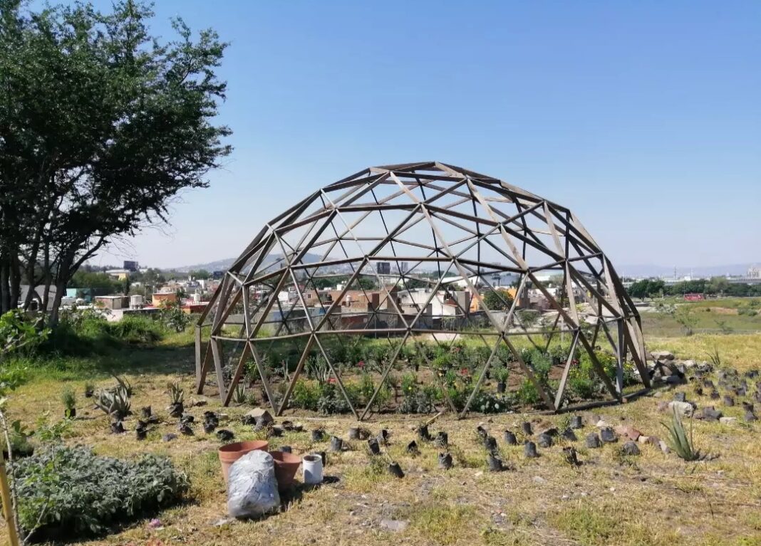 Geodésica Polinizadora reconstruida con metal. (Autor: Colectivo Vecinal Bosque Urbano Tlaquepaque).