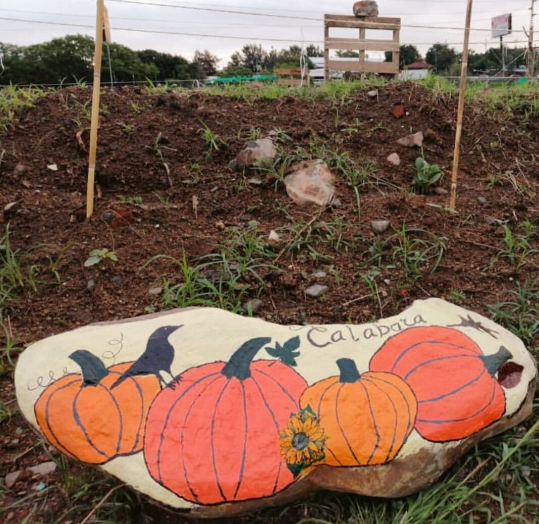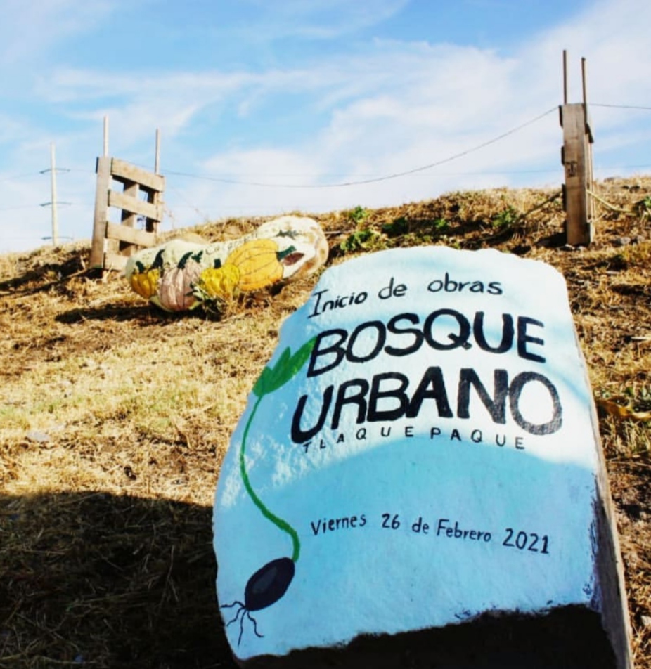 Huerto y escombros del 92, pintados y resignificados para la señalización de lo que sembraron. Autor: Colectivo Vecinal Bosque Urbano Tlaquepaque