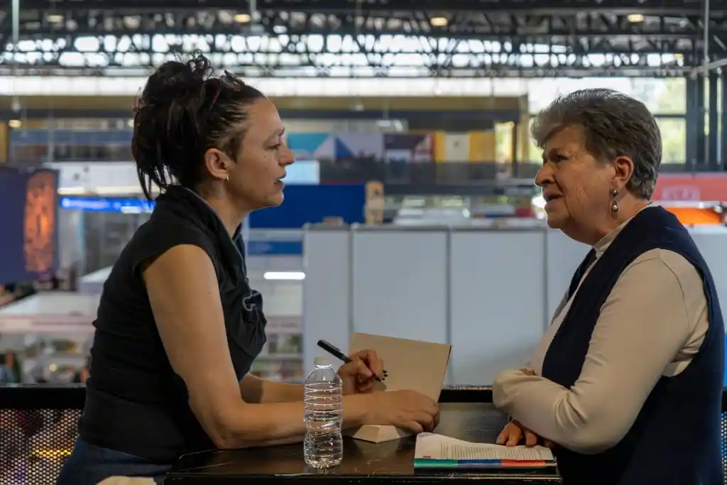 Tras la presentación de Palestina en pedazos, Lina Meruane dialogó y firmó libros. Foto: Luis Eduardo Escobar
