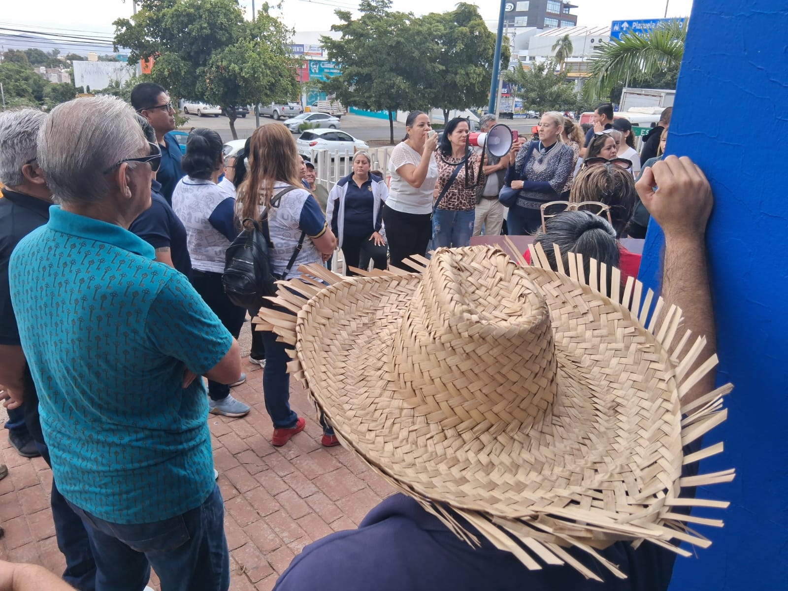 Además del adeudo salarial, los manifestantes expresaron su rechazo al descuento que, aseguraron, ya comenzó a reflejarse en los cheques como parte del proceso de reingeniería financiera de la institución.