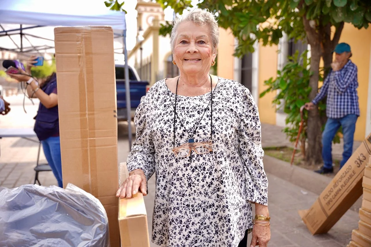 Patricia Gaxiola González, beneficiaria y comerciante de Mocorito, agradeció el oportuno apoyo con estos equipos.